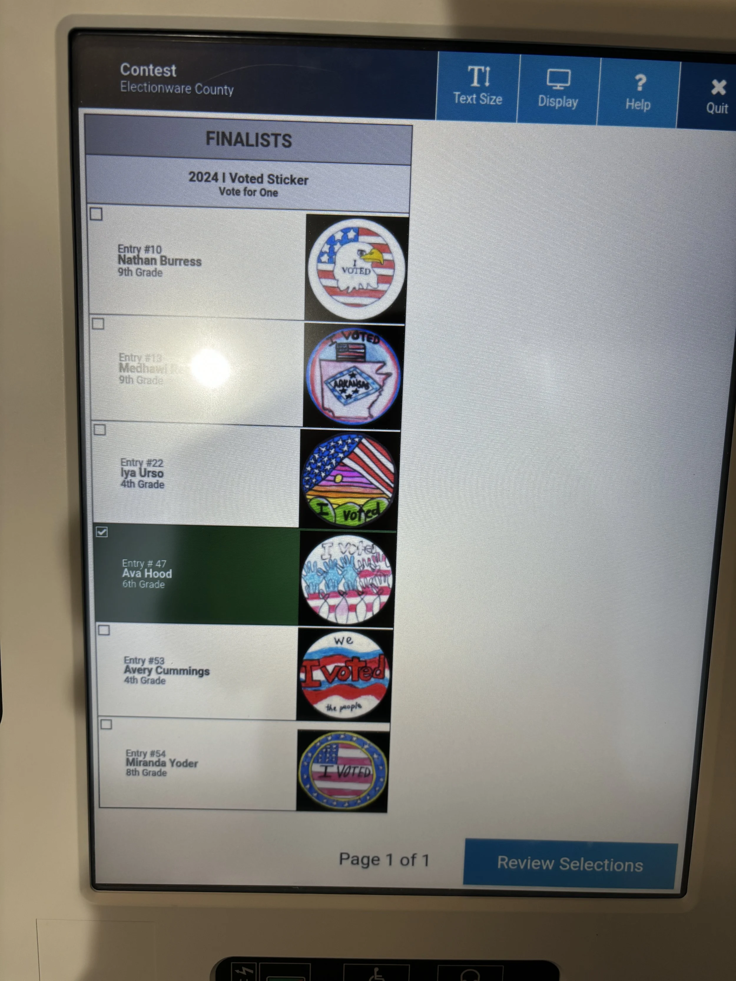 Supported the creation of Arkansas’s first “I Voted” sticker contest for local children in Washington County, encouraging civic engagement.